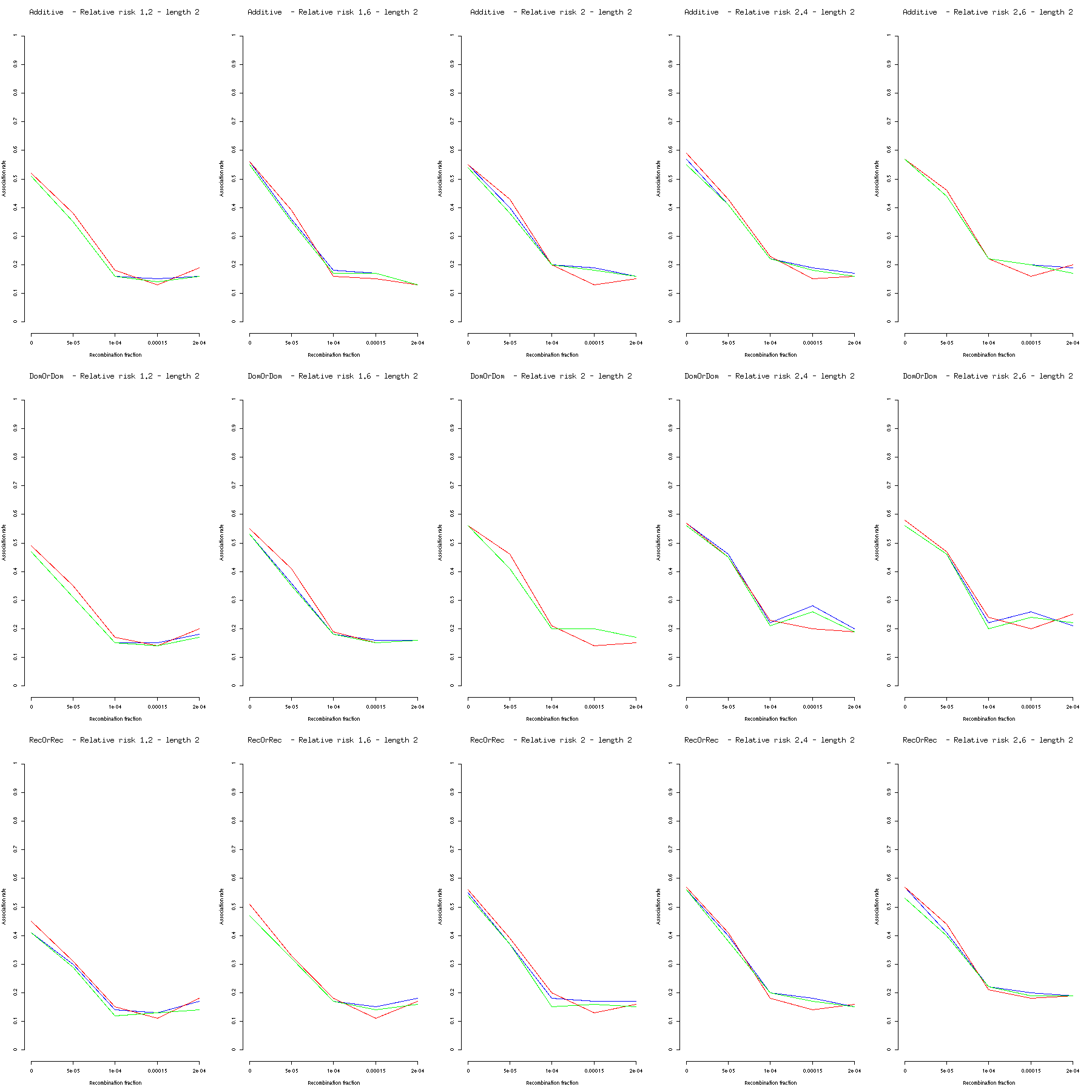 Two disease susceptibility loci: Additive - DomOrDom - RecOrRec disease models